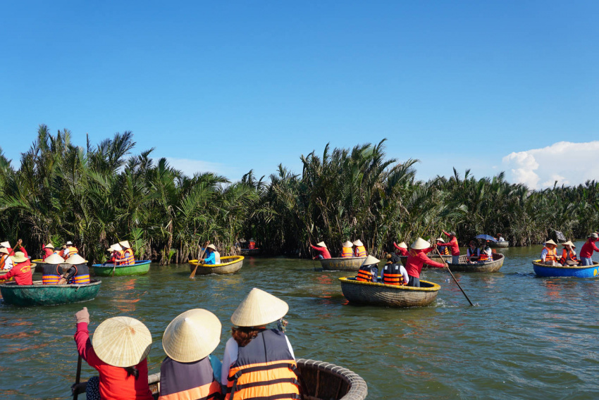 Di chuyển theo đường sông: Đây là loại hình di chuyển mới cũng được nhiều du khách ưa chuộng trong thời gian qua. Ngay gần chợ Hội An có bến thuyền Bạch Đằng, du khách có thể đến đây để lên thuyền, xuôi theo dòng sông Hoài để đến với rừng dừa.