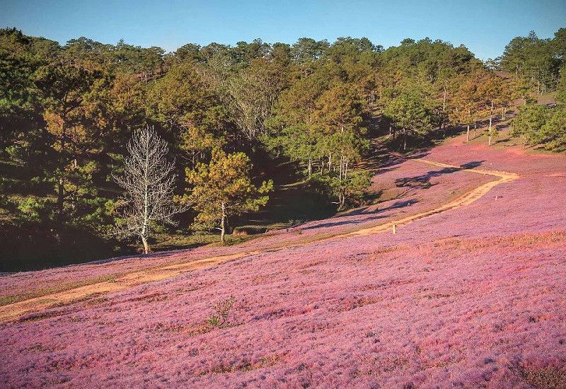 Đồi cỏ hồng Đà Lạt có lẽ là địa điểm du lịch không còn xa lạ với du khách. Vào mỗi dịp Noel, đồi cỏ hồng lại hiện lên với vẻ đẹp lung linh, ngọt ngào. Trên đường đi tới đồi cỏ, chúng ta sẽ bắt gặp một khu rừng thông xanh tươi tràn đầy sức sống. Đây cũng là rừng thông được nhiều người tới để chụp ảnh, check-in, picnic.