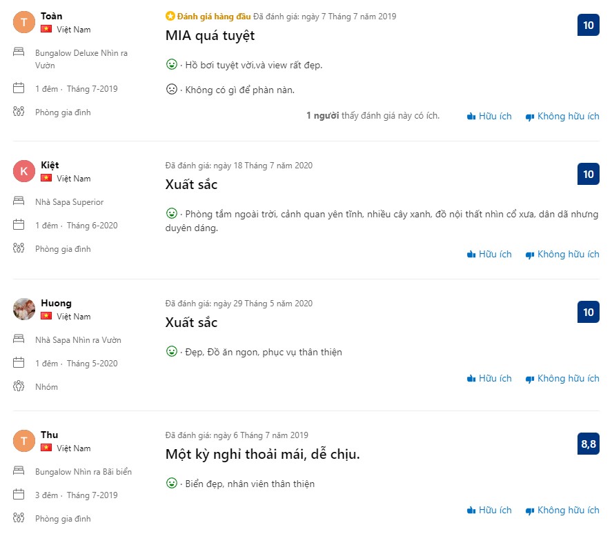 Dưới đây là một số đánh giá của những du khách đã nghỉ dưỡng tại đây mà Reviewvilla.vn sưu tầm được. Bạn đọc có thể tham khảo và cân nhắc lựa chọn về những dịch vụ, tiện nghi nghỉ dưỡng phù hợp với bản thân và gia đình mình nhé!