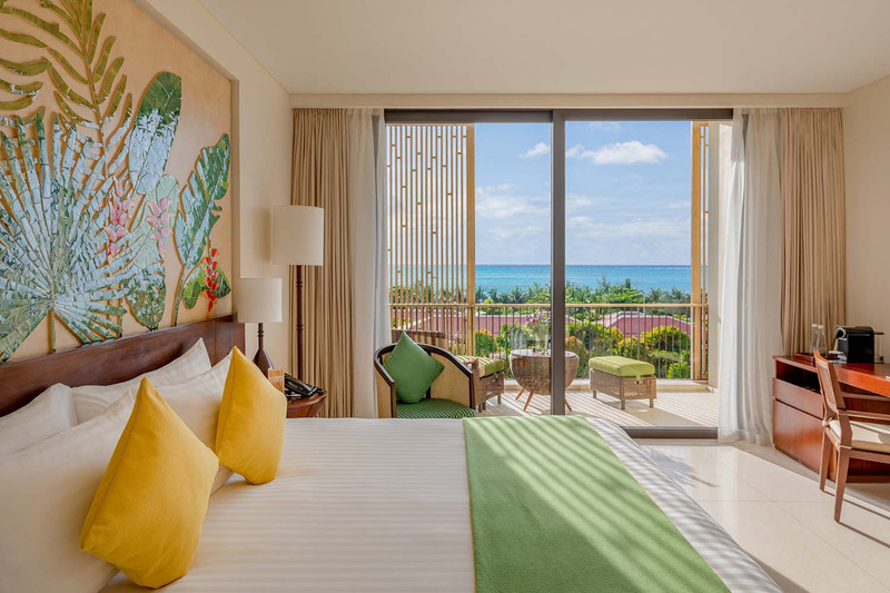 Phòng Deluxe hướng biển có diện tích 43m vuông, du khách có thể lựa chọn phòng 1 giường đôi hoặc 2 giường đơn tùy vào nhu cầu cũng như sở thích của mình. Phòng được trang trí theo phong cách tối giản nhưng vô cùng thanh lịch do được lấy cảm hứng từ sự giao thoa giữa kiến trúc phương Đông ấm cúng và phương Tây sang trọng.