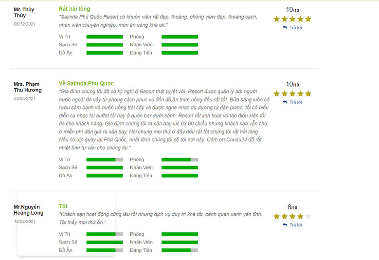 9. Một số review Salinda Resort Phu Quoc Island của khách hàng