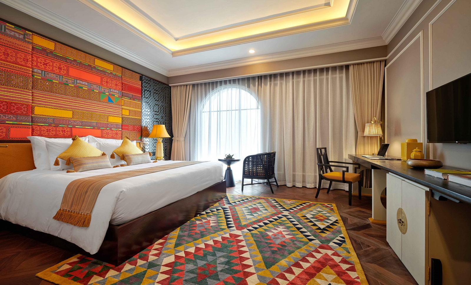 Gồm 1 phòng khách và 1 phòng ngủ với diện tích rộng 50-60m2, phòng Junior Suite bài trí theo phong cách thanh lịch, chấm phá thêm những họa tiết thổ cẩm của dân tộc thiểu số tại Sapa, cung cấp cho khách du lịch không gian nghỉ dưỡng sang trọng hiếm nơi đâu sánh bằng.