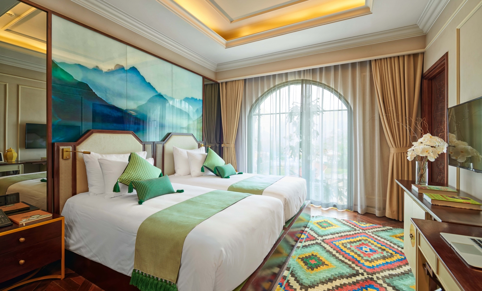Loại phòng cao cấp này hứa hẹn sẽ mang đến cho du khách trải nghiệm tiện nghi, dịch vụ đẳng cấp trong không gian rộng 90m2. Ban công riêng tư với tầm nhìn ra dãy Hoàng Liên Sơn hùng vĩ và vườn hoa xinh xắn cũng là một trong những điểm đặc biệt của hạng phòng này.