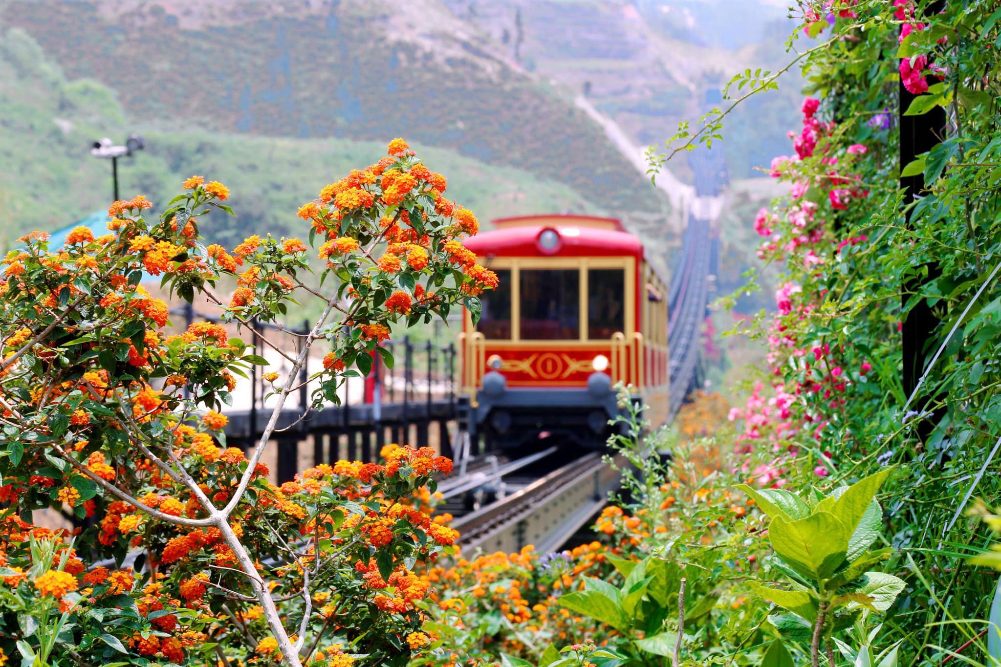 Đi tàu hỏa leo núi Mường Hoa là trải nghiệm độc đáo và thú vị trong hành trình du lịch Sapa. Du khách sẽ có 6 phút ngồi trên tàu hoả leo núi hiện đại được thiết kế theo phong cách châu Âu cổ điển, băng qua thung lũng Mường Hoa xinh đẹp giữa sương mờ, trải nghiệm góc nhìn từ trên cao với những nếp nhà bình yên của bà con dân tộc, ngắm nhìn trọn vẹn bức tranh phong cảnh kỳ vĩ, thơ mộng của núi rừng Tây Bắc.