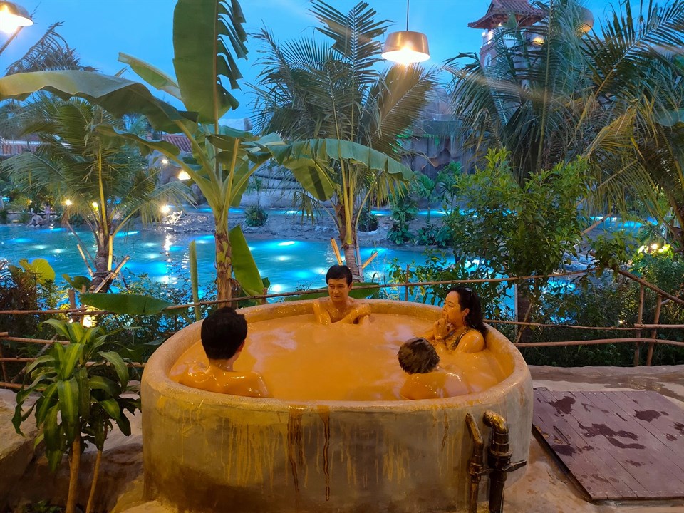 - Tắm bùn khoáng nóng: 350.000 vnđ/người lớn (1 – 3 người); 300.000 vnd/người lớn (4 – 5 người); 260.000 vnđ/người lớn (6 người trở lên); 150.000 vnđ/người (trẻ em).