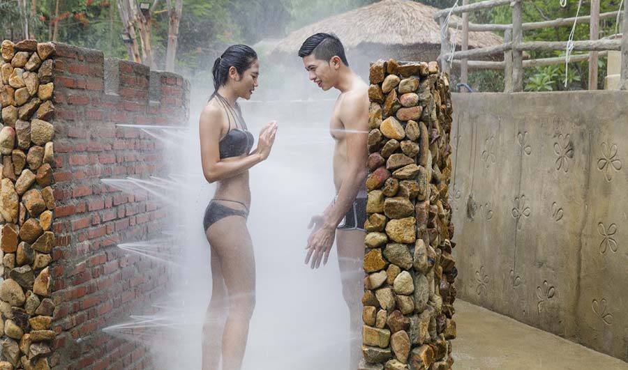 - Bước 4: Tắm sạch bùn với nước khoáng ấm. Sau khi bùn đã khô lại, bạn hãy dùng nước khoáng nóng để tắm lại. Lưu ý: không nên dùng nước lạnh hoặc xà bông và sữa tắm để tắm, bởi như vậy sẽ vô tình làm trôi đi những khoáng chất còn lưu lại trên da và làm giảm hiệu quả tắm bùn Nha Trang.