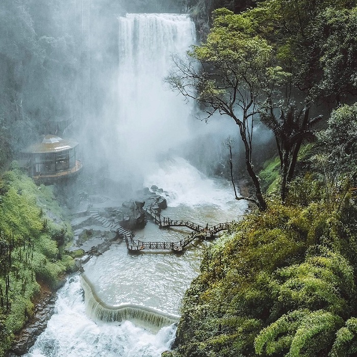 Đặc biệt, ngay bên dưới thác là một cây cầu gỗ hình tam giác. Cây cầu bao gồm ba con đường dẫn đến các địa điểm khác nhau để ngắm thác. Đây là điểm rất đặc biệt vì nằm giữa dòng suối và những vách đá cheo leo.