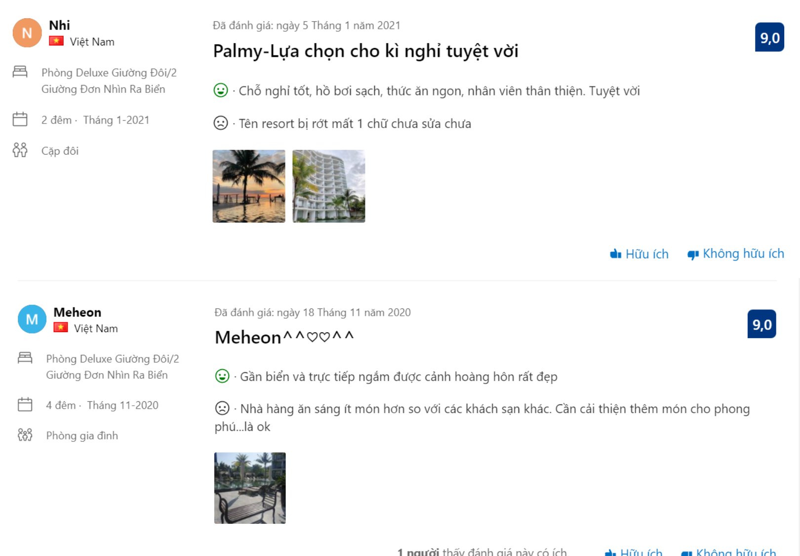 Review của khách hàng về The Palmy Phu Quoc Resort & Spa