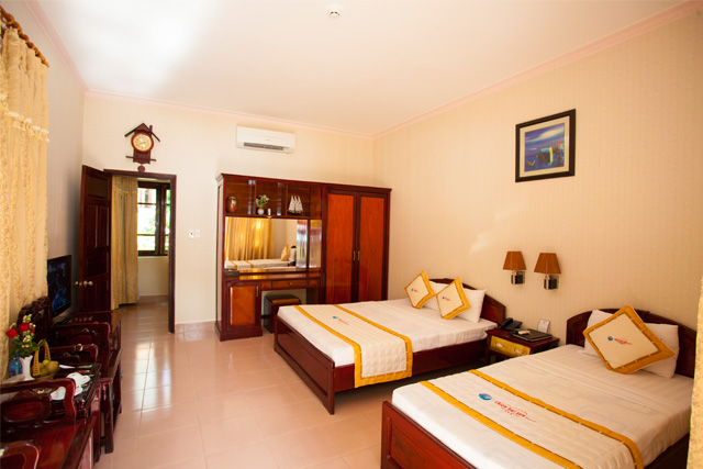 “Phòng building không được hiện đại lắm nhưng sạch sẽ, đầy đủ tiện nghi. Dọn phòng hàng ngày. Nhân viên thân thiện, lịch sự. Hồ bơi sạch, đẹp, tương đối rộng rãi, nhưng ít khách đi bơi. Phòng ăn rộng rãi, thức ăn khá ngon với mức resort 3 sao. Tuy nhiên buffet không đa dạng, khá ít món, khoảng 10 đến 15 món” – Khoa Pham Dang