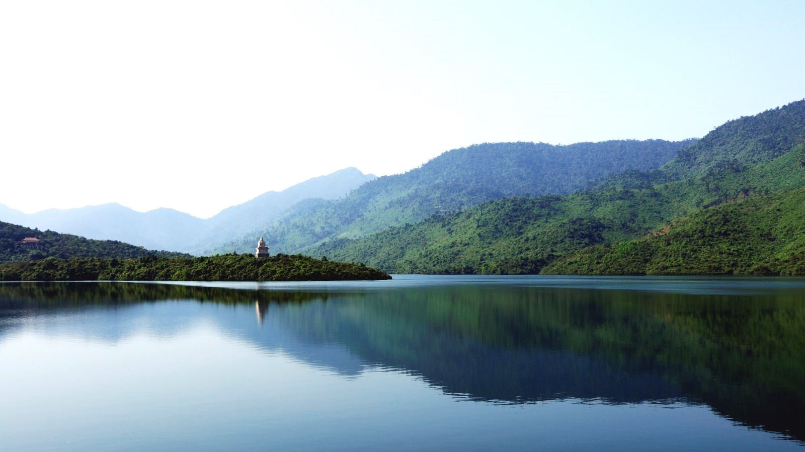 Đứng từ trên cao của khu vực thiền viện, nhìn xuống mặt hồ giống như một tấm gương ngọc bích khổng lồ giữa rừng núi đại ngàn. Phảng phất xung quanh là mùi hương của cây cỏ, khiến tâm tư rất đỗi nhẹ nhàng.
