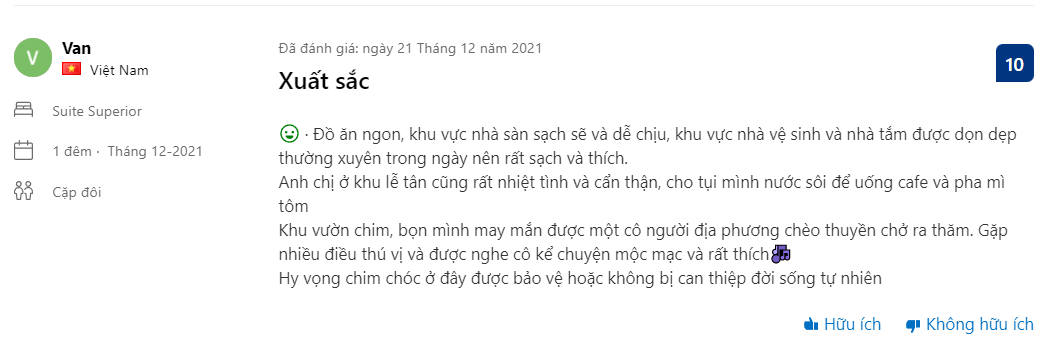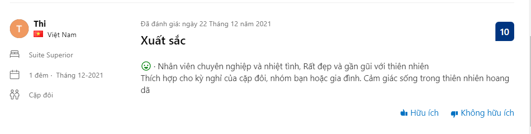 Nhiều du khách quốc tế và trong nước đều rất hài lòng khi đến với Thung Nham Resort và để lại nhiều đánh giá tốt. Cùng Reviewvilla.vn điểm qua một vài đánh giá của khách hàng khi nghỉ dưỡng tại resort nhé.