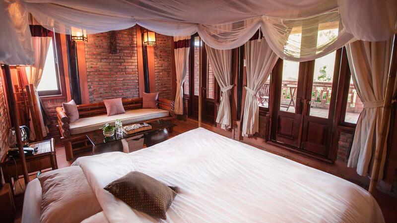 Resort Van Chai có tổng cộng 80 phòng khách sạn và 2 biệt thự độc lập, riêng biệt. Mỗi phòng nghỉ đều được thiết kế tỉ mỉ và công phu, thể hiện tâm huyết của người tạo ra nó, tinh thần dân tộc và hơi thở truyền thống trong từng cái cột kèo. Cùng theo chân Reviewvilla.vn khám phá từng nội thất độc đáo của hệ thống phòng nghỉ nơi đây nhé.
