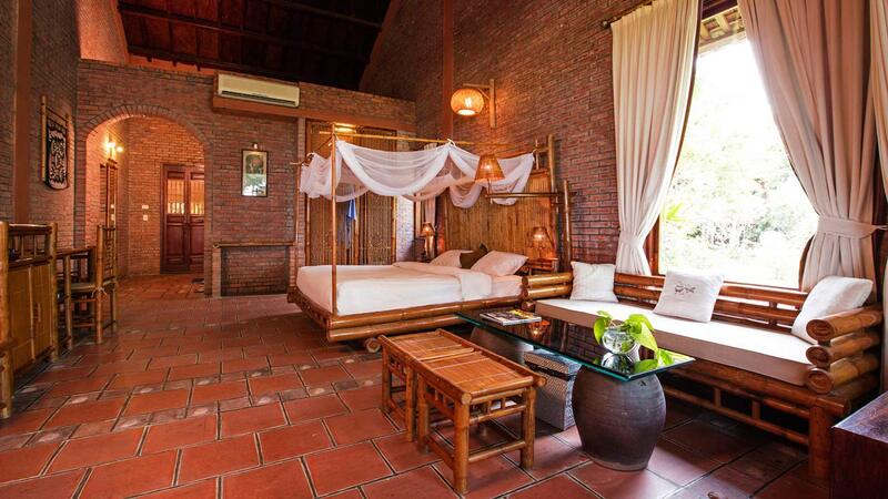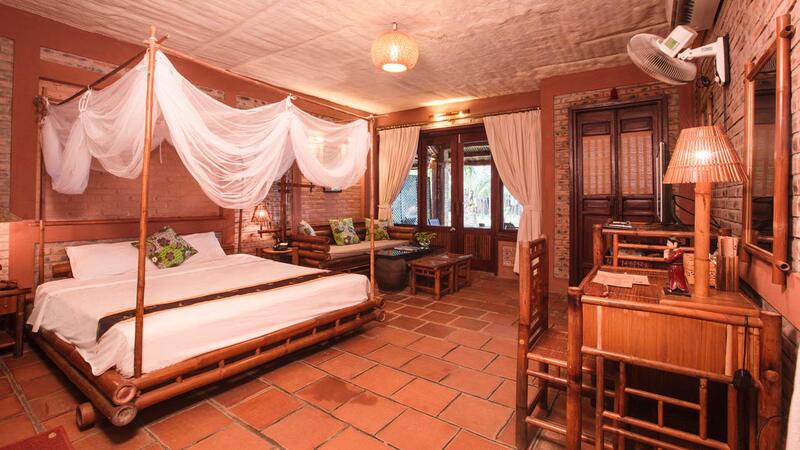 Phòng Superior hướng vườn là hạng phòng rẻ nhất tại Vạn Chài Resort. Phòng nghỉ tiêu chuẩn có diện tích 25m2 dành cho 2 khách. Thiết kế căn phòng dung dị, giản đơn như căn nhà xưa vùng quê Bắc Bộ với nền gạch đỏ, giường gỗ mây, mùng trắng nhẹ nhàng và những bàn ghế cổ. Tất cả cửa sổ và cửa chính đều được thiết kế đúng chuẩn ngày xưa, mang đến cảm giác hoài niệm vô cùng.