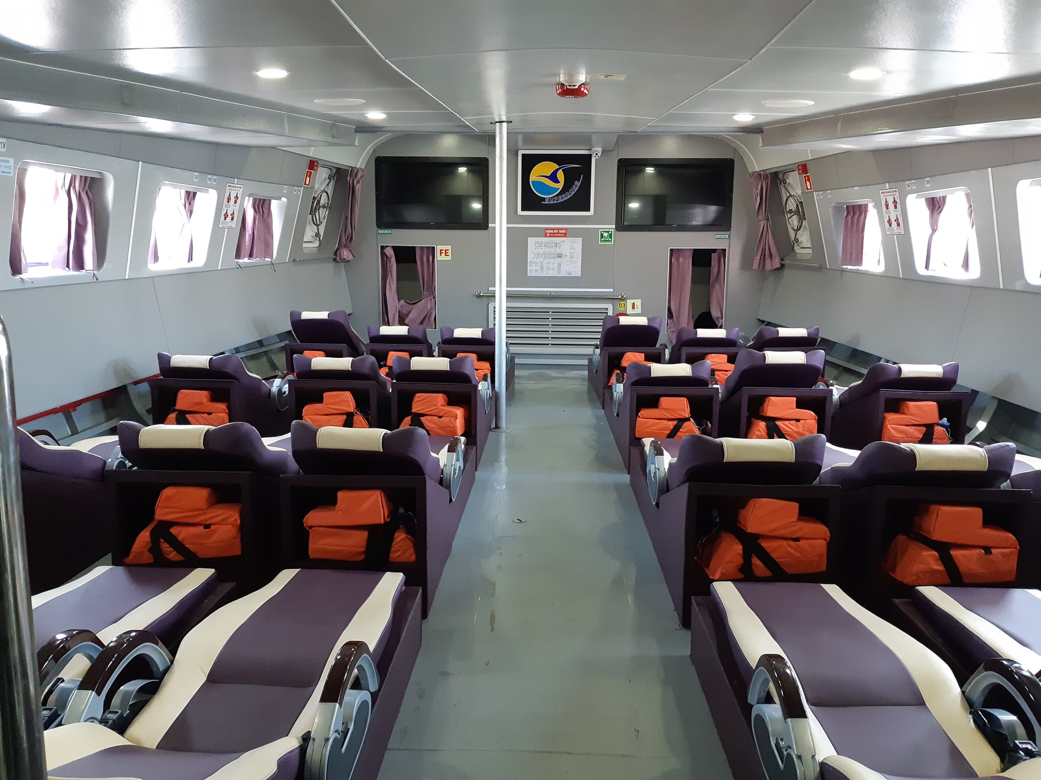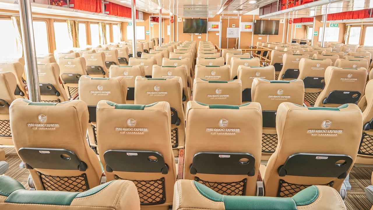 Tuy nhiên, khoang phổ thông cũng không hề kém cạnh với vách ốp da, sàn chống ồn, vô cùng phù hợp với người lớn tuổi và trẻ em khi di chuyển. Bên cạnh những đặc điểm kể trên thì còn có thêm một điểm thu hút khách hàng đặt vé tàu đi Phú Quốc của Phú Quốc Express đó là đây là hãng tàu duy nhất khai thác tuyến tàu di chuyển từ Cà Mau tới Phú Quốc giúp cho du khách khởi hành từ Cà Mau không còn phải mất quá nhiều thời gian di chuyển ra các bến tàu Hà Tiên hay Rạch Giá.