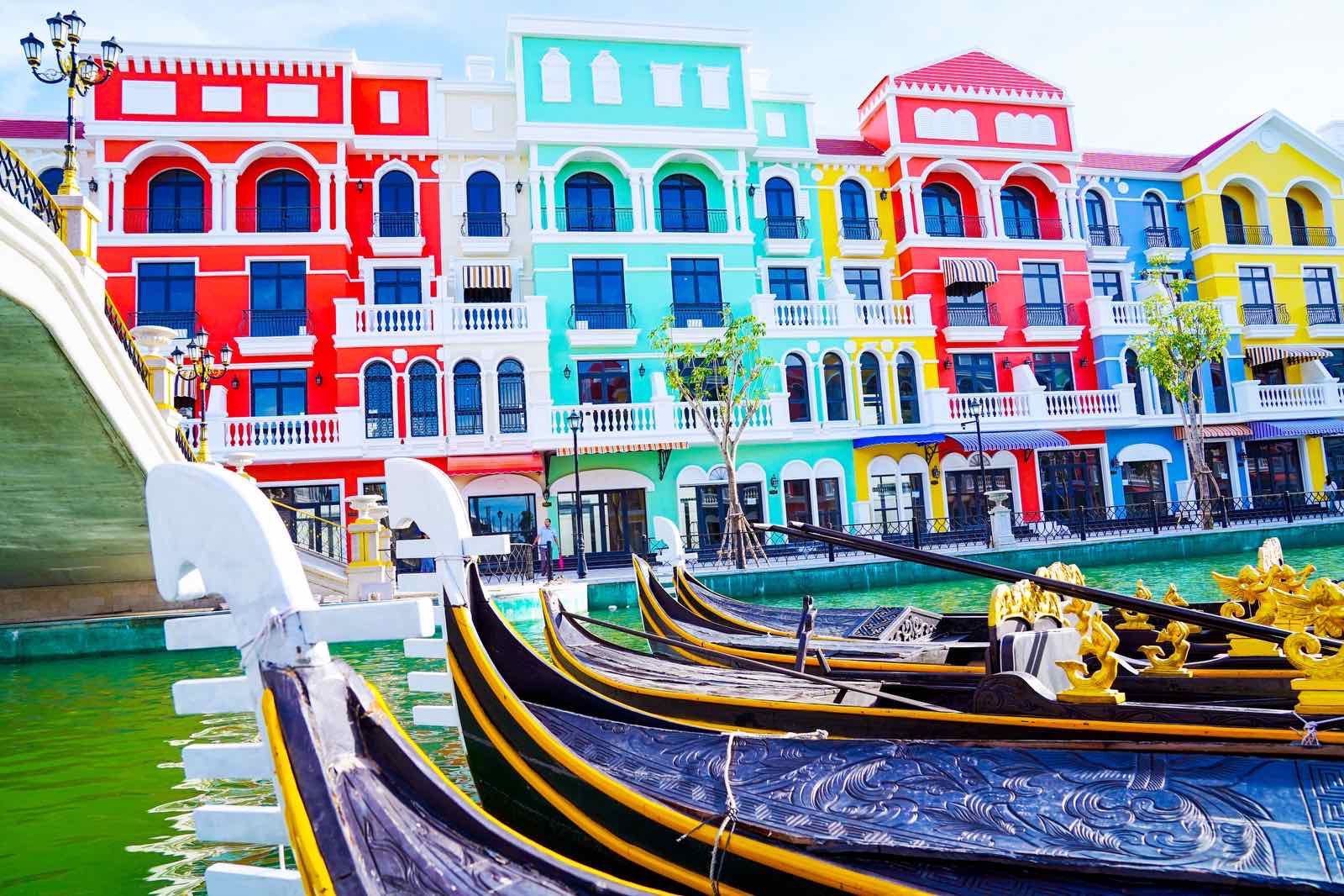 Nếu chưa có cơ hội du lịch Ý để trải nghiệm chèo thuyền dọc kênh Venice thì bạn hãy đến ngay Venice Phú Quốc. Đến đây, du khách có cơ hội tận hưởng sự yên bình và lãng mạn khi ngồi trên chiếc Gondola truyền thống, xuôi theo dòng nước trong xanh giữa dòng kênh và ngắm nhìn những khu phố lộng lẫy đầy màu sắc.