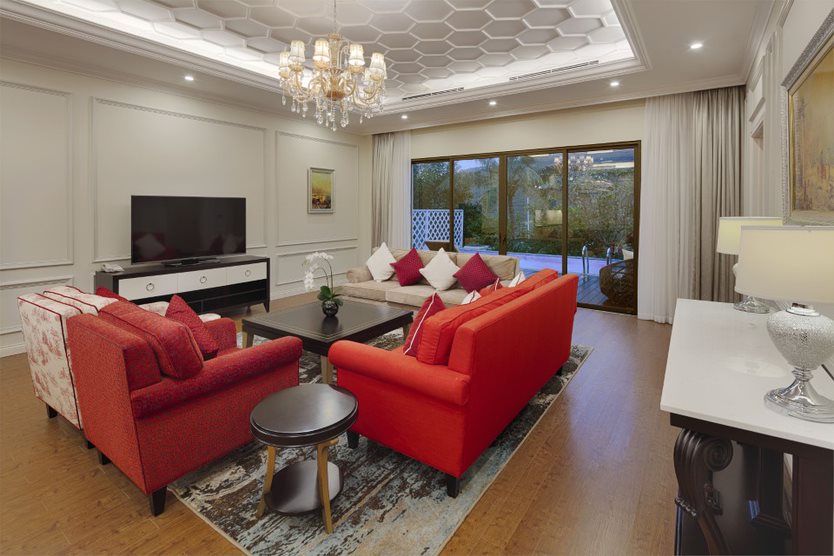 Villa 3-Bedroom Pool View có diện tích lớn lên đến 220 mét vuông, đây là một căn hộ 3 phòng ngủ mang một phong cách hiện đại. Căn phòng có bố cục gọn gàng, tinh tế khiến không gian căn phòng trở nên thoáng đãng hơn. Phòng ngủ của căn biệt thự có ban công hướng ra hồ bơi nên quý khách có thể dễ dàng đến hồ bơi để tắm mát.