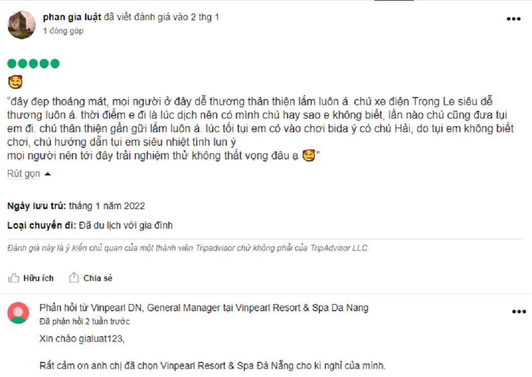 Review khách hàng về Vinpearl Resort & Spa Đà Nẵng