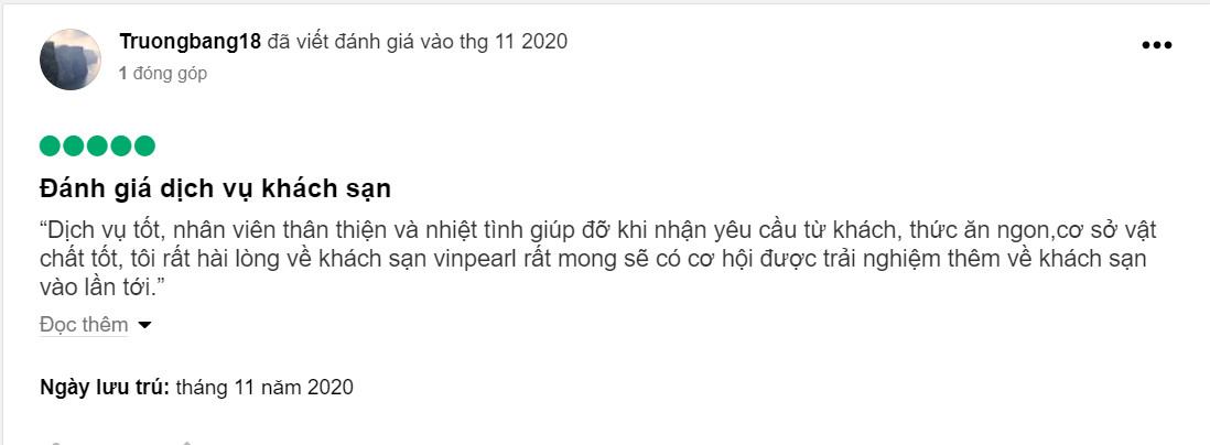 Review của khách hàng về khách sạn Vinpearl Thanh Hoá