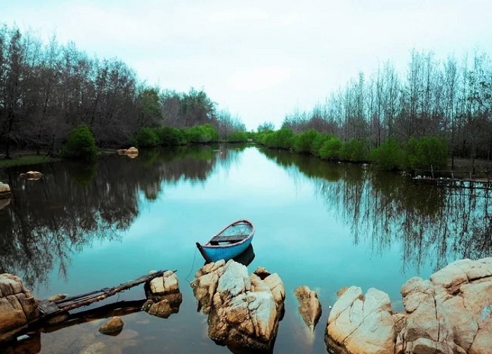 Nếu bạn đi bộ dọc theo bờ biển, bạn sẽ thấy một rừng dương xanh biếc. Khi ngồi trên bờ, giữa làn gió thổi vi vu, bên kia là tiếng sóng biển rì rào sẽ khiến tâm hồn bạn như được trẻ lại và bình yên đến lạ.