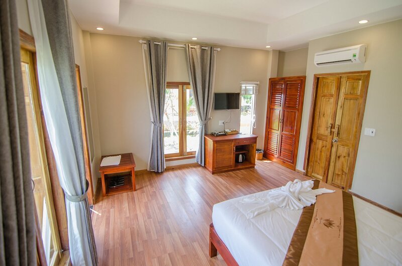 “Khu này có phòng bungalow riêng biệt, phòng ốc sạch sẽ, thoáng mát, chỉ đều máy lạnh hình như không được chất lượng lắm… Không thấy lạnh, họ có để sẵn trong phòng 1 cây quạt đứng (nhưng phát ra tiếng hơi ồn). Nói chung dịch vụ tạm ổn. Giá phòng hợp lý. Có thể trải nghiệm thử.” – Nguyen Le