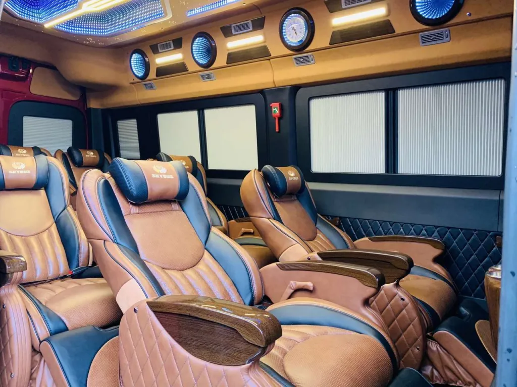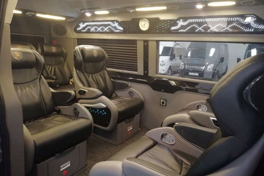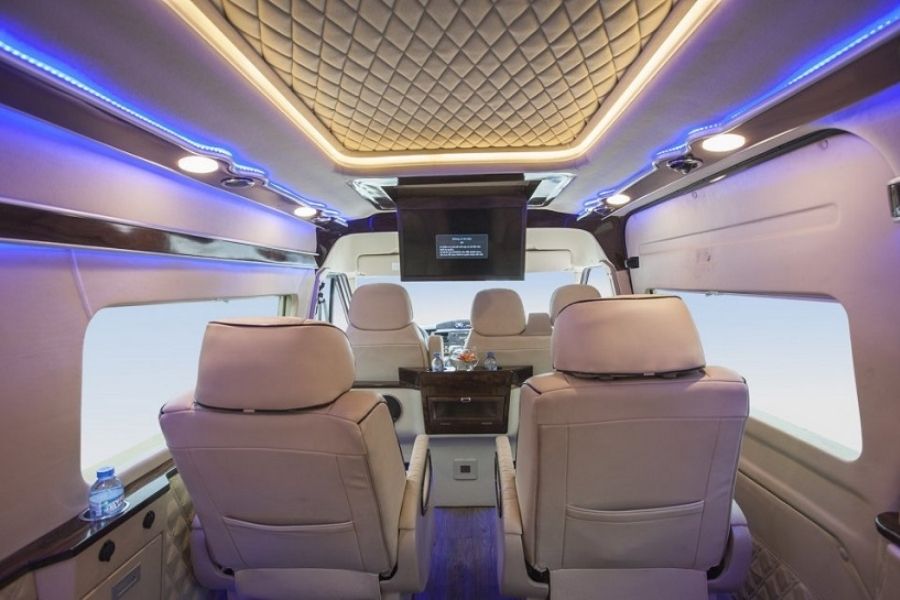 Nội thất trong xe được trang bị vô cùng hiện đại như wifi tốc độ cao, tủ lạnh mini, tivi và hệ thống âm thanh ánh sáng đầy đủ. Vậy nên, bạn cứ yên tâm là bản thân sẽ có một chuyến đi vô cùng thú vị.