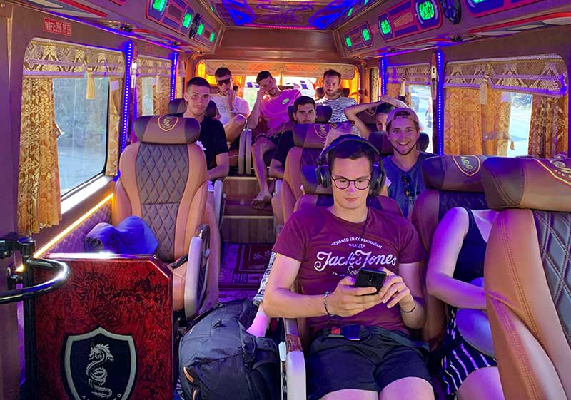 Mỗi ghế đều được bọc da mềm rất êm ái, trên xe hành khách còn được phát chăn và gối nằm miễn phí. Nước lọc, khăn lạnh luôn sẵn sàng khi du khách có nhu cầu.