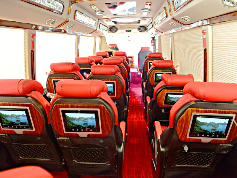 Tiện ích trên xe trang bị với TV Led, hệ thống âm thanh, ánh sáng sống động, cổng sạc USB tiện dụng ở mỗi ghế. Hành trình di chuyển của bạn sẽ trở nên nhanh chóng, tiện lợi và vui vẻ hơn rất nhiều.